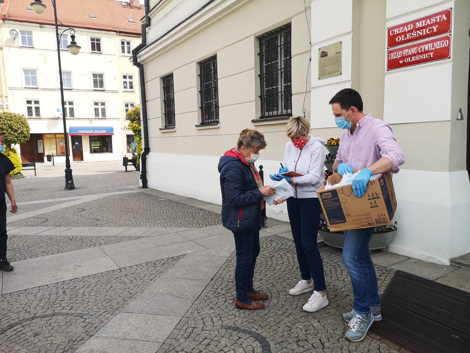 24 Kwietnia 2020Zakończyliśmy dzisiaj akcję MASECZKA DLA SENIORA. Prowadziliśmy ją od ubiegłego czwartku. Dedykowana była do osób starszych, które ukończyły 65 lat. Zainteresowanie było bardzo duże. Rozdaliśmy blisko 9 tysięcy darmowych pakietów z maseczkami ochronnymi i rękawiczkami jednorazowymi. Nasze maseczki można wielokrotnie użyć, jednak przed kolejnym założeniem należy je wyprać i wyprasować. Statystycznie zaopatrzyliśmy w maseczkę każdego seniora z grupy 65+. Bardzo się cieszymy, że oleśniccy seniorzy tak licznie skorzystali z naszej pomocy i pokazali, że chcą być zabezpieczeni.