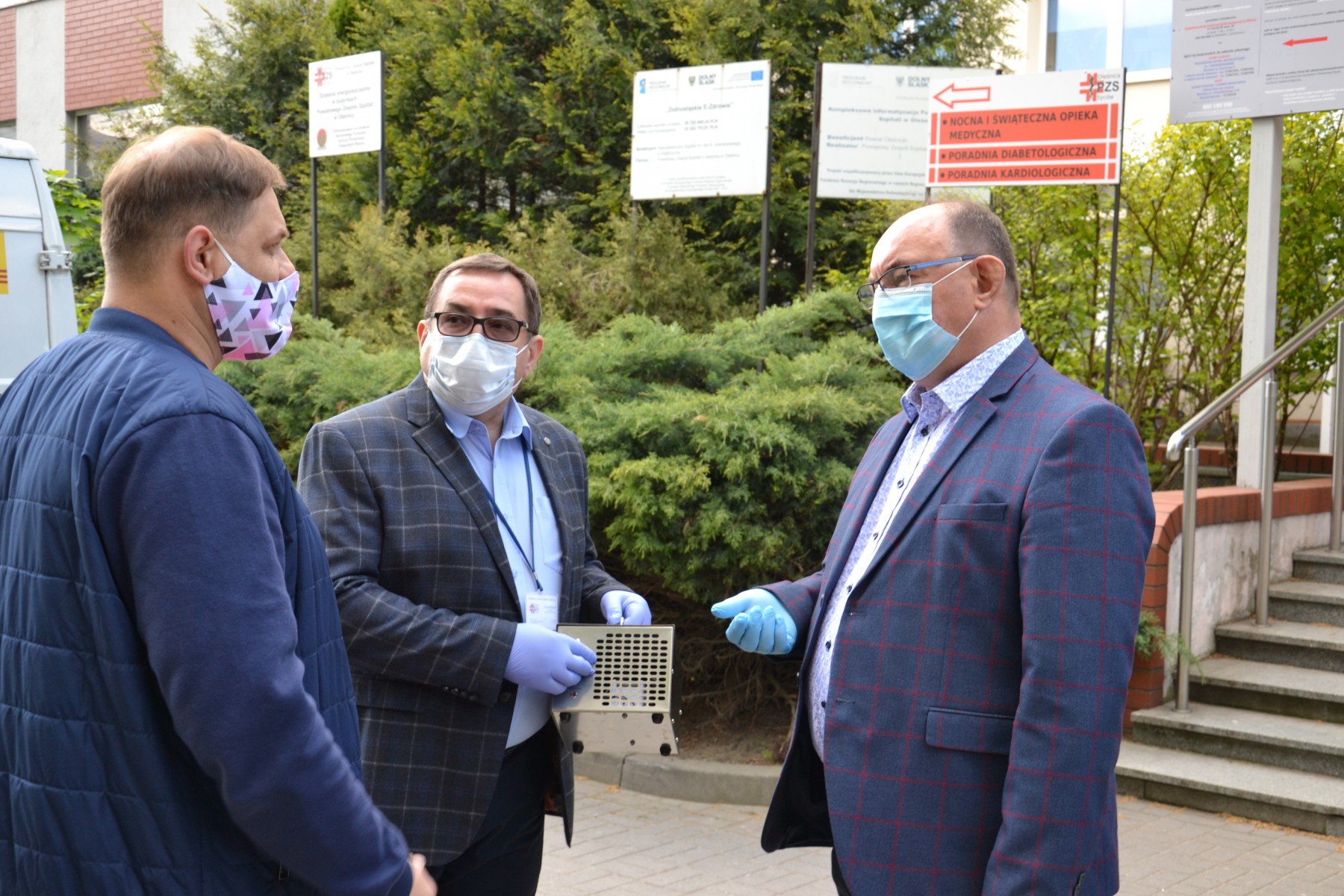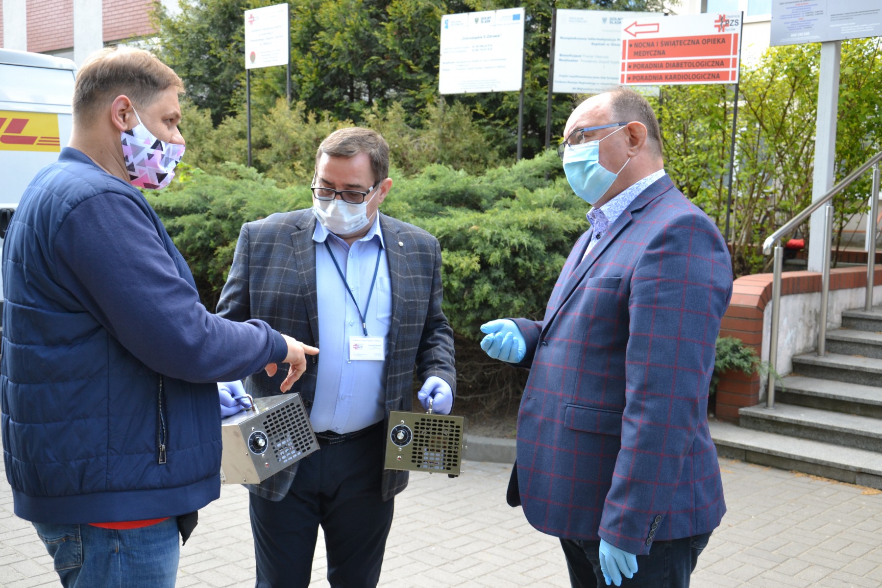 20 Maja 2020Burmistrz Jan Bronś przekazał dzisiaj Dyrektorowi Powiatowego Zespołu Szpitali w Oleśnicy oraz Dyrektorom Przedszkola Nr 6 i 4 ozonatory przenośne, które otrzymał w ubiegłym tygodniu od oleśnickiego przedsiębiorcy Pana Andrzeja Horna.
