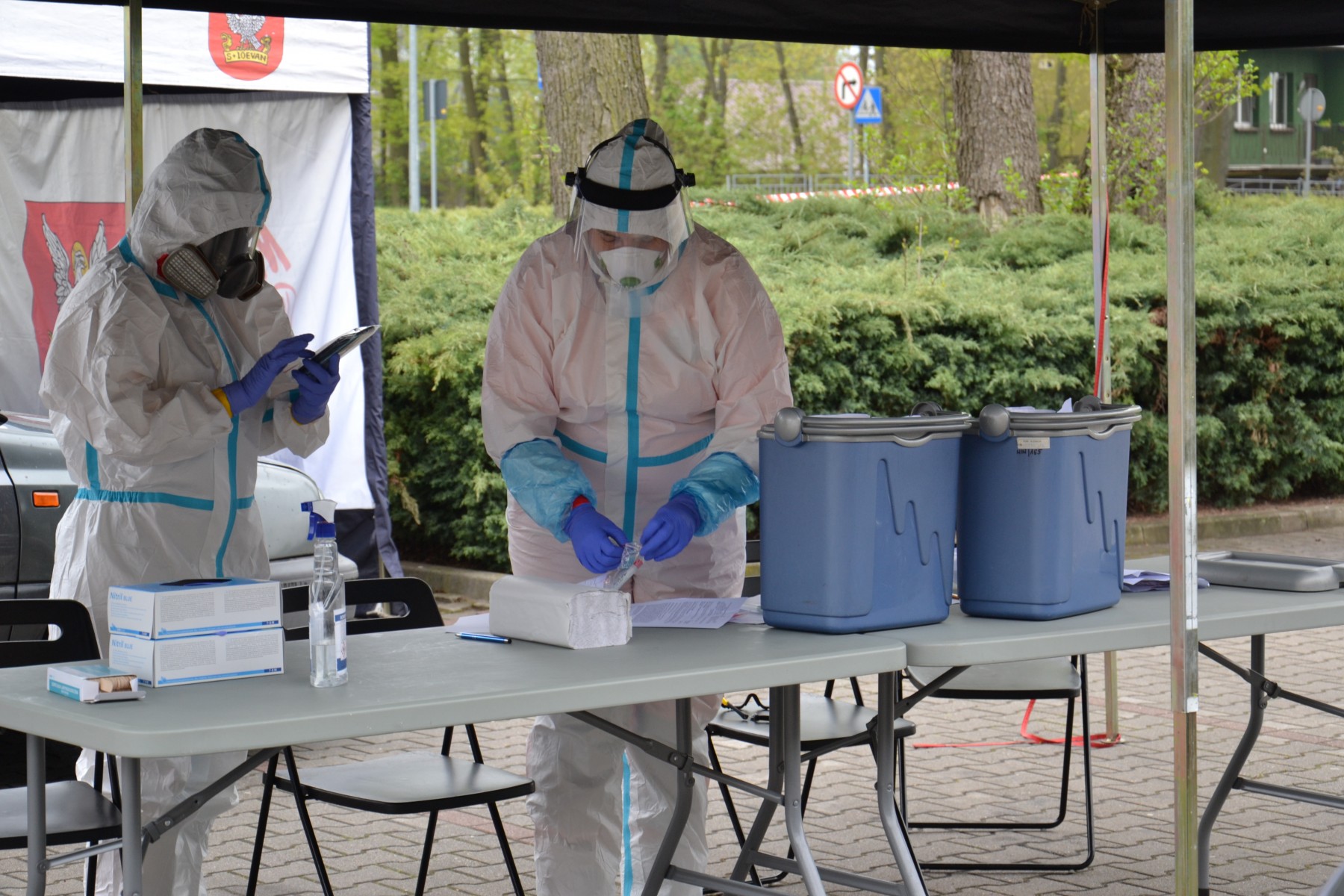29 Kwietnia 2020Dzisiaj w punkcie mobilnym przy OKR Atol pobierane są wymazy od kolejnej grupy osób przebywających w kwarantannie. Jest to kontynuacja działań z ubiegłego czwartku.