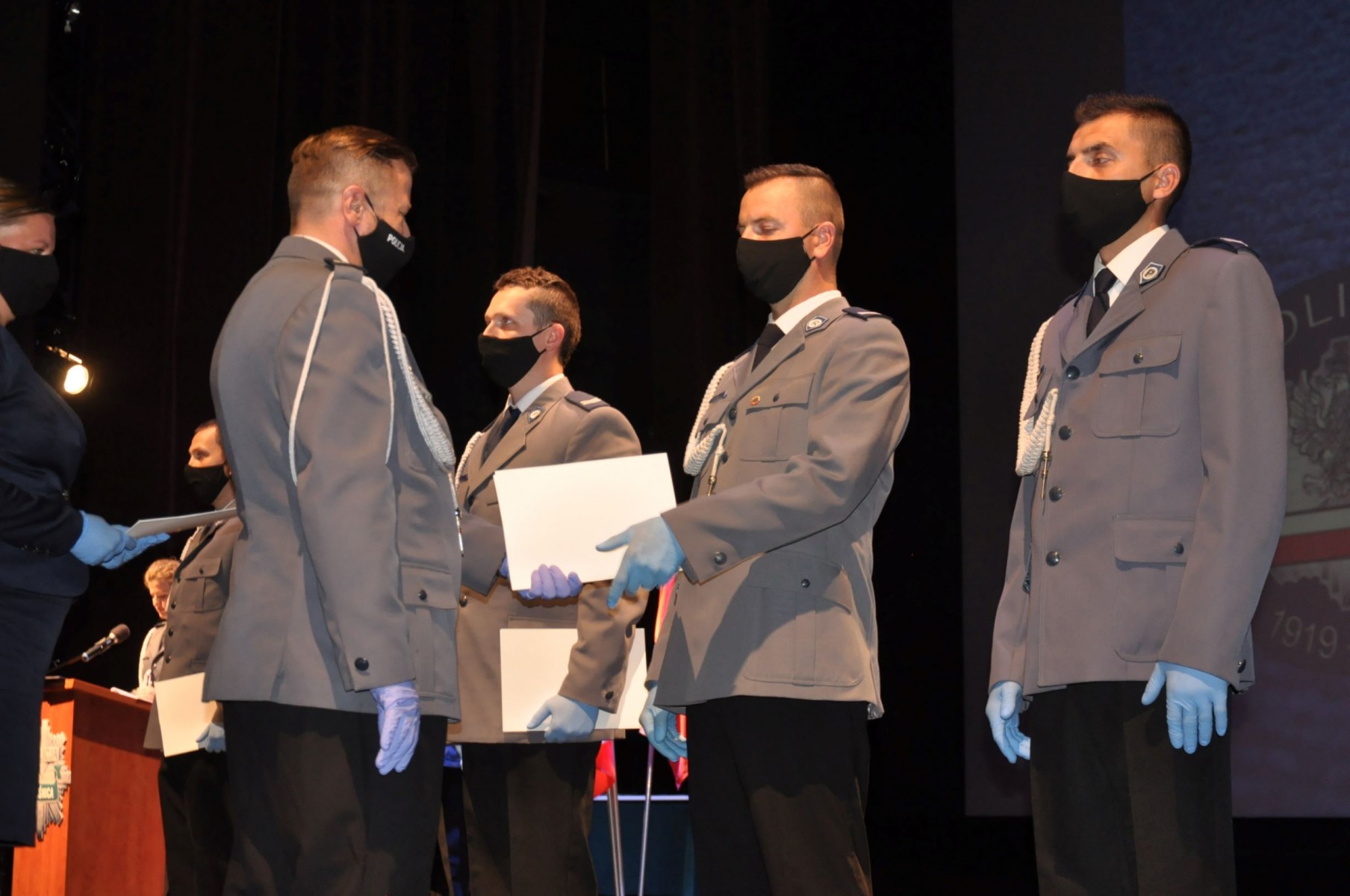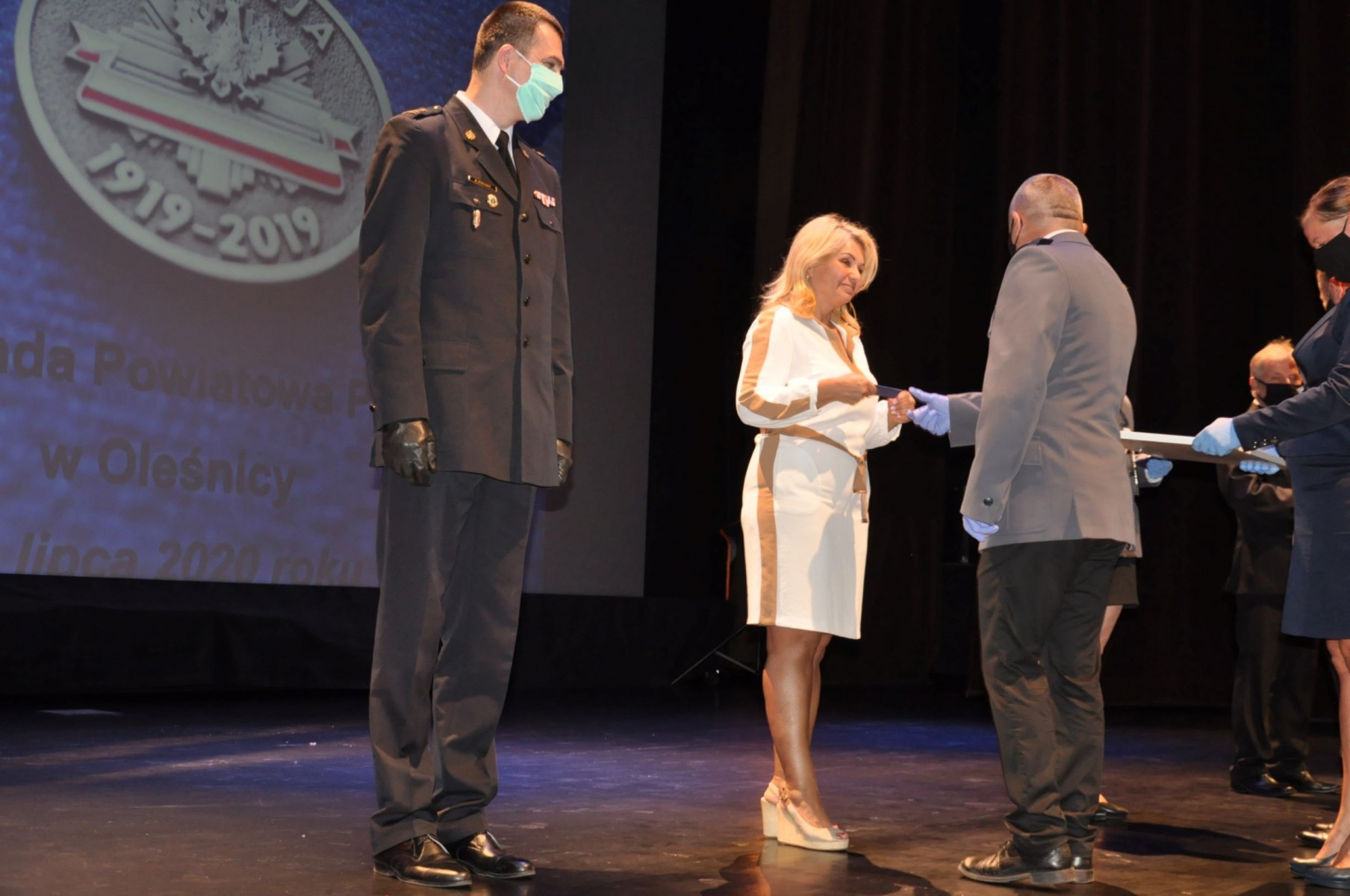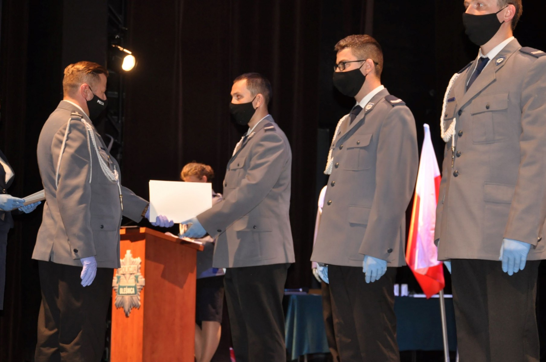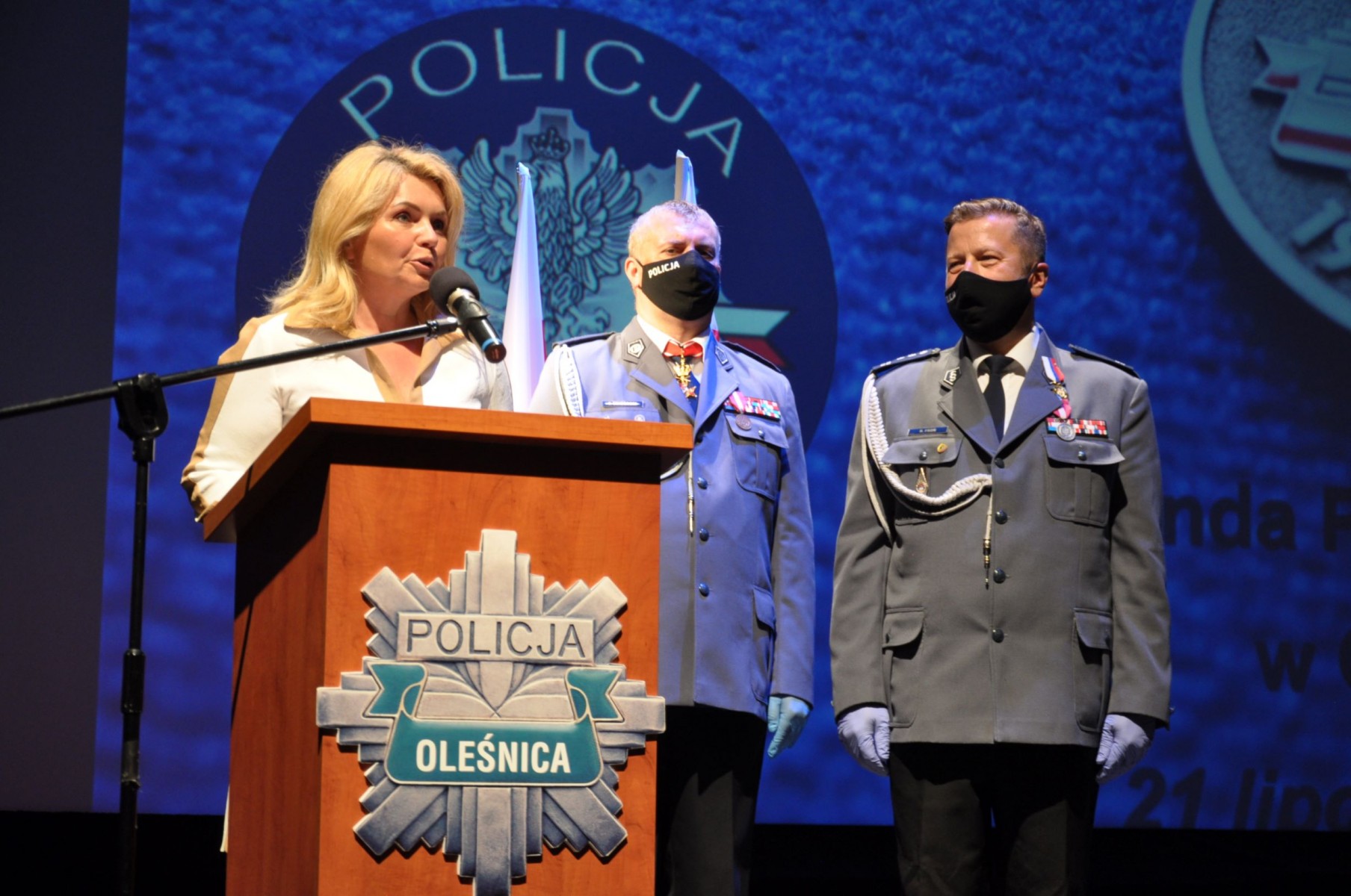 Policjanci otrzymali awanse na wyższe stopnie służbowe, odznaczenia, wyróżnienia i nagrody. Wśród zaproszonych gości byli samorządowcy z powiatu oleśnickiego. Zastępca Burmistrza Edyta Małys - Niczypor, w imieniu Burmistrza Jana Bronsia, uhonorowała dwóch policjantów z KPP w Oleśnicy nagrodami za zaangażowaną służbę na rzecz naszych mieszkańców, a na ręce Komendanta Powiatowego Policji w Oleśnicy - młodszego inspektora Roberta Fronia - złożyła list z życzeniami dla wszystkich policjantów. Tradycyjnie kwiaty dla policjantów zastąpiono podarunkami dla podopiecznych Domu Dziecka w Bierutowie.