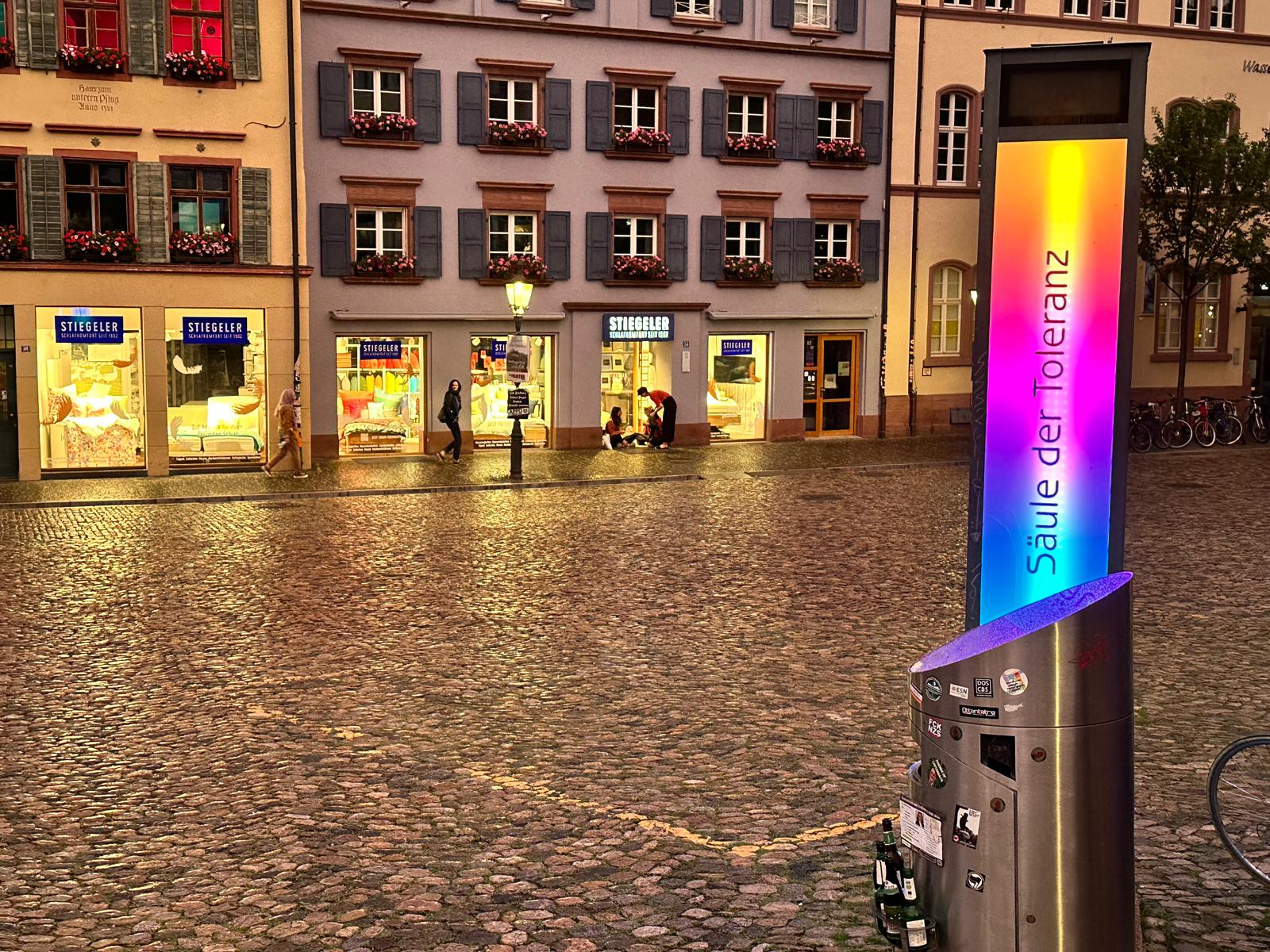 Natomiast na Augustinerplatz pokazano nam godną naśladowania małą budowlę, o niezwykle społecznym oddziaływaniu, tzw. „słup tolerancji”. Plac jest miejscem, w którym wieczorami często przesiadują turyści i studenci, prowadząc głośne rozmowy, co utrudnia życie okolicznym mieszkańcom. Reakcją na coraz częstsze skargi było postawienie wspomnianej konstrukcji z czujnikami dźwięku. Kiedy natężenie hałasu jest zbyt duże słup zmienia kolor na czerwony, co jest dla wszystkich rozpoznawalnym znakiem, że należy przyciszyć rozmowy lub przenieść się w inne miejsce. Opierając się nie tylko na relacji pracowników urzędu miasta, ale na własnych obserwacjach możemy stwierdzić, że pomysł był strzałem w dziesiątkę. Ludzie szanują fakt, że inni mają prawo do odpoczynku i kiedy słup zmieniał kolor obecni na placu natychmiast zaczynali rozmawiać ciszej lub odchodzili.
