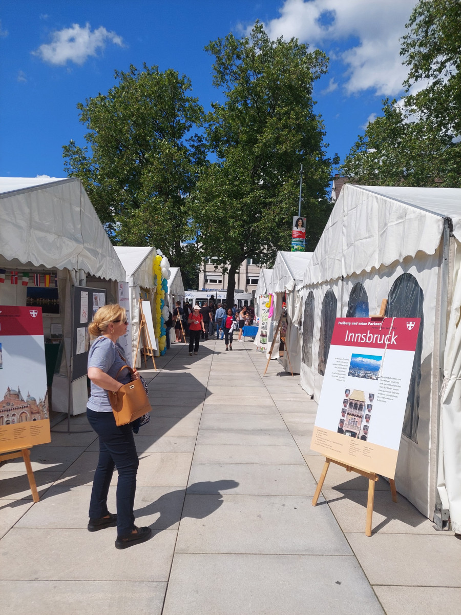 Natomiast zastępca burmistrza Martin Haag zaprosił nas na spacer po starówce. Odwiedziliśmy stoiska z produktami miast partnerskich. Poznaliśmy też kilka swoistych ciekawostek wpisujących się w ekologiczny i niezwykle społeczny charakter miasta.