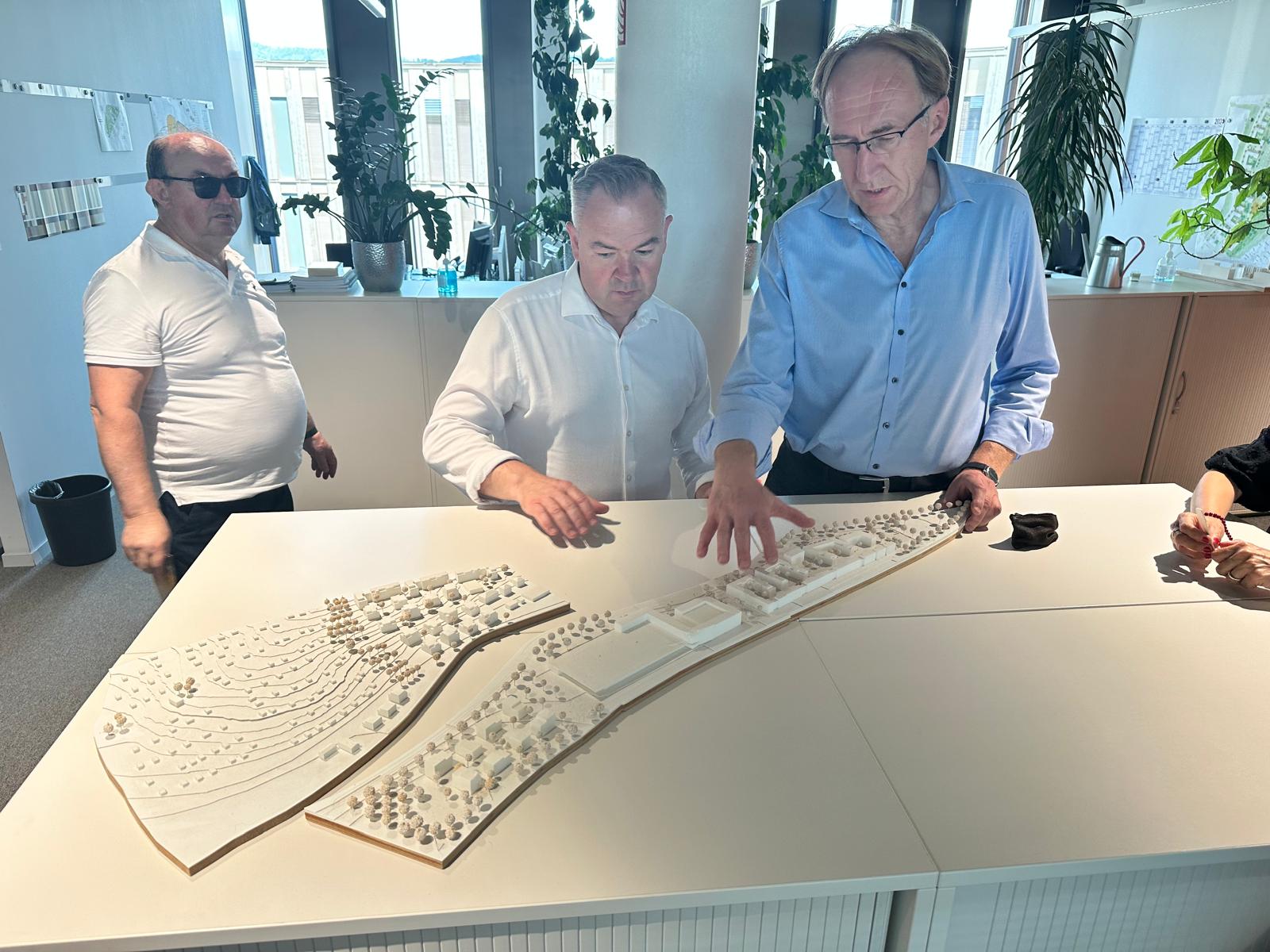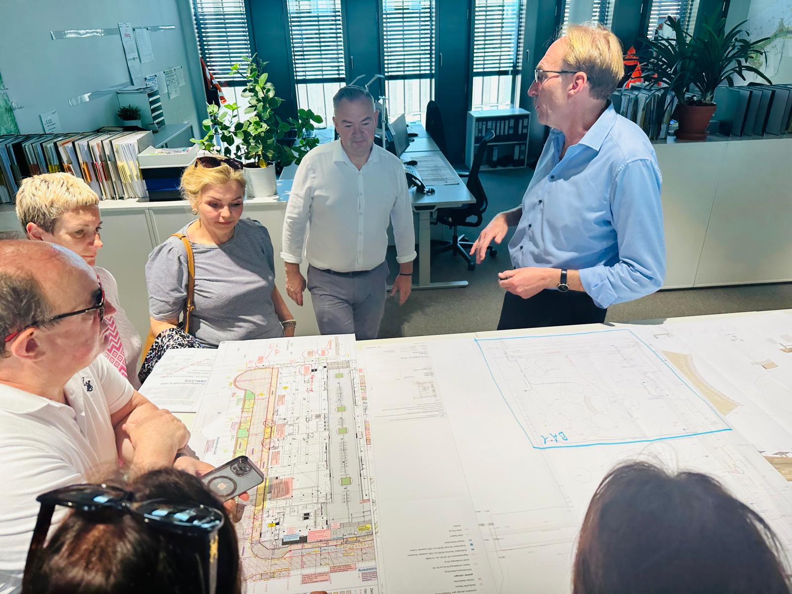 Naszą wizytę rozpoczęliśmy od spotkania z burmistrzem miasta Martinem Hornem, na kompleksie basenowym Westbad, podczas eventu rozpoczynającego modernizację i rozbudowę tego obiektu z zastosowaniem rozwiązań i technologii EKO. Podczas rozmowy mieliśmy możliwość zapoznania się z projektem budowalnym nowego basenu oraz technologiami, jakie będą stosowane podczas prac.