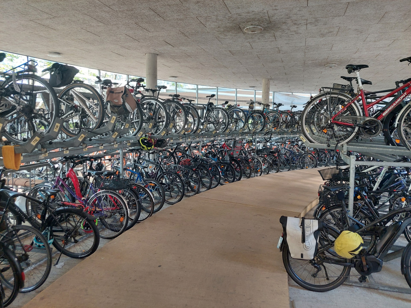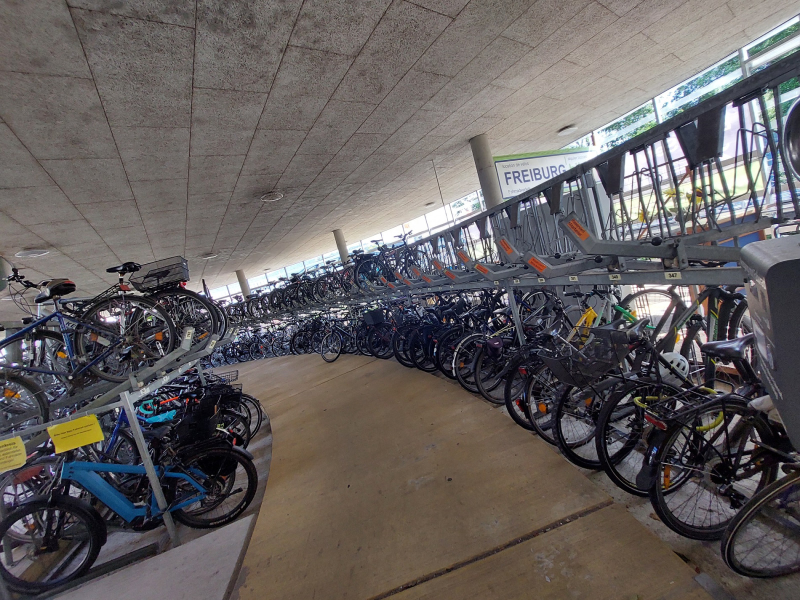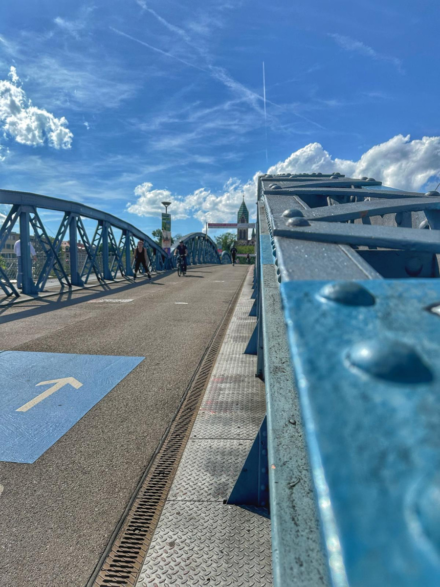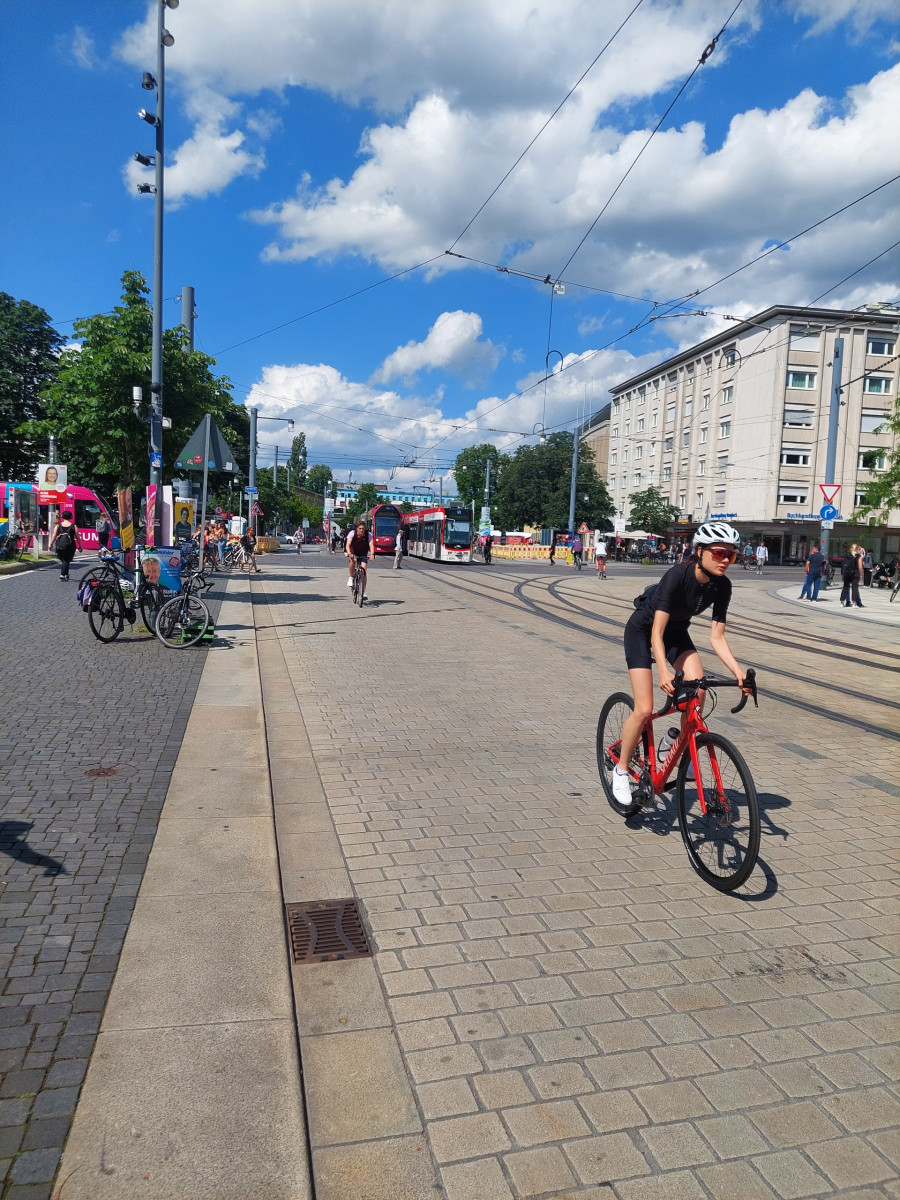 Dominującym środkiem transportu w Freiburgu jest rower. To miasto jest po prostu stworzone dla rowerów. Są one wszędzie. Przypięte do wszechobecnych stojaków przy chodnikach, kawiarniach, sklepach, instytucjach, a trasy rowerowe wokół miasta i w samym mieście to istne autostrady dla cyklistów. Infrastruktura drogowa została idealnie dostosowana do poruszania się jednośladami. Pierwszy raz widzieliśmy kilkupiętrowe parkingi ze stacjami dla rowerów. Zastosowane udogodnienia, takie jak zawężenia jezdni dla samochodów, ograniczenie na większości dróg prędkości jazdy do 30 km/h, strefy bez ruchu samochodowego, podwyższone opłaty za parkowanie samochodów w ścisłym centrum, arterie dla rowerów składające się z kilku pasów ruchu – zdecydowanie zachęcają do korzystania z jednośladów.