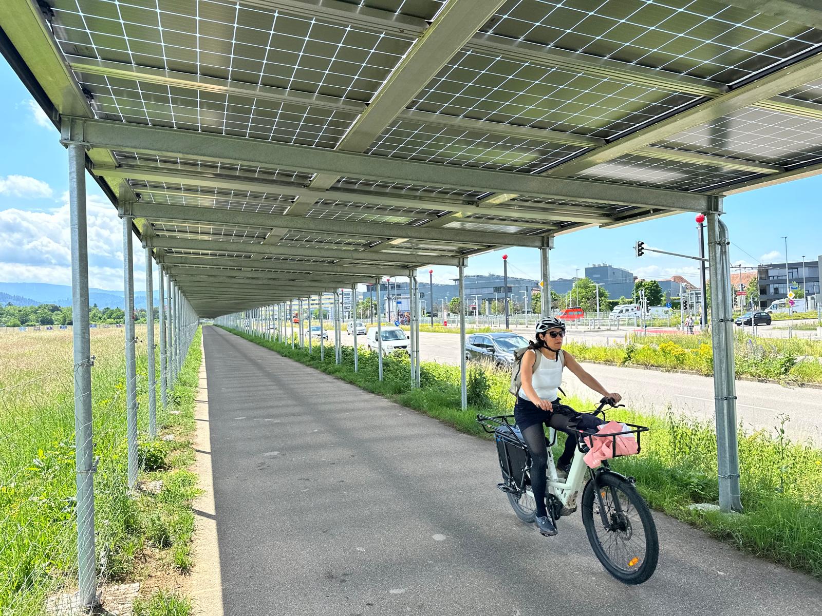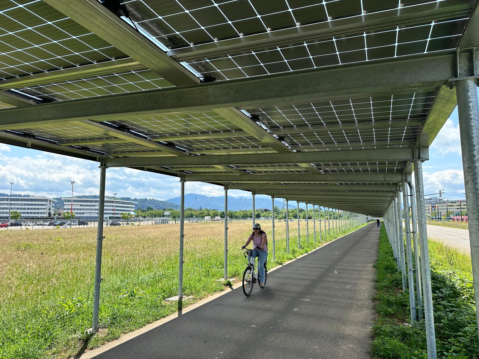 Niezwykle interesującym rozwiązaniem jest 300 metrowa fotowoltaiczna ścieżka rowerowa, której zadaszenie wyposażono w panele fotowoltaiczne. Jest to pierwszy tego typu projekt w Europie, zrealizowany przez miasto i Uniwersytet we Freiburgu. Takie rozwiązanie jest wielofunkcyjne – chroni rowerzystów przed deszczem i słońcem, a jednocześnie generuje tani i ekologiczny prąd, z którego między innymi ścieżka jest w nocy oświetlana.