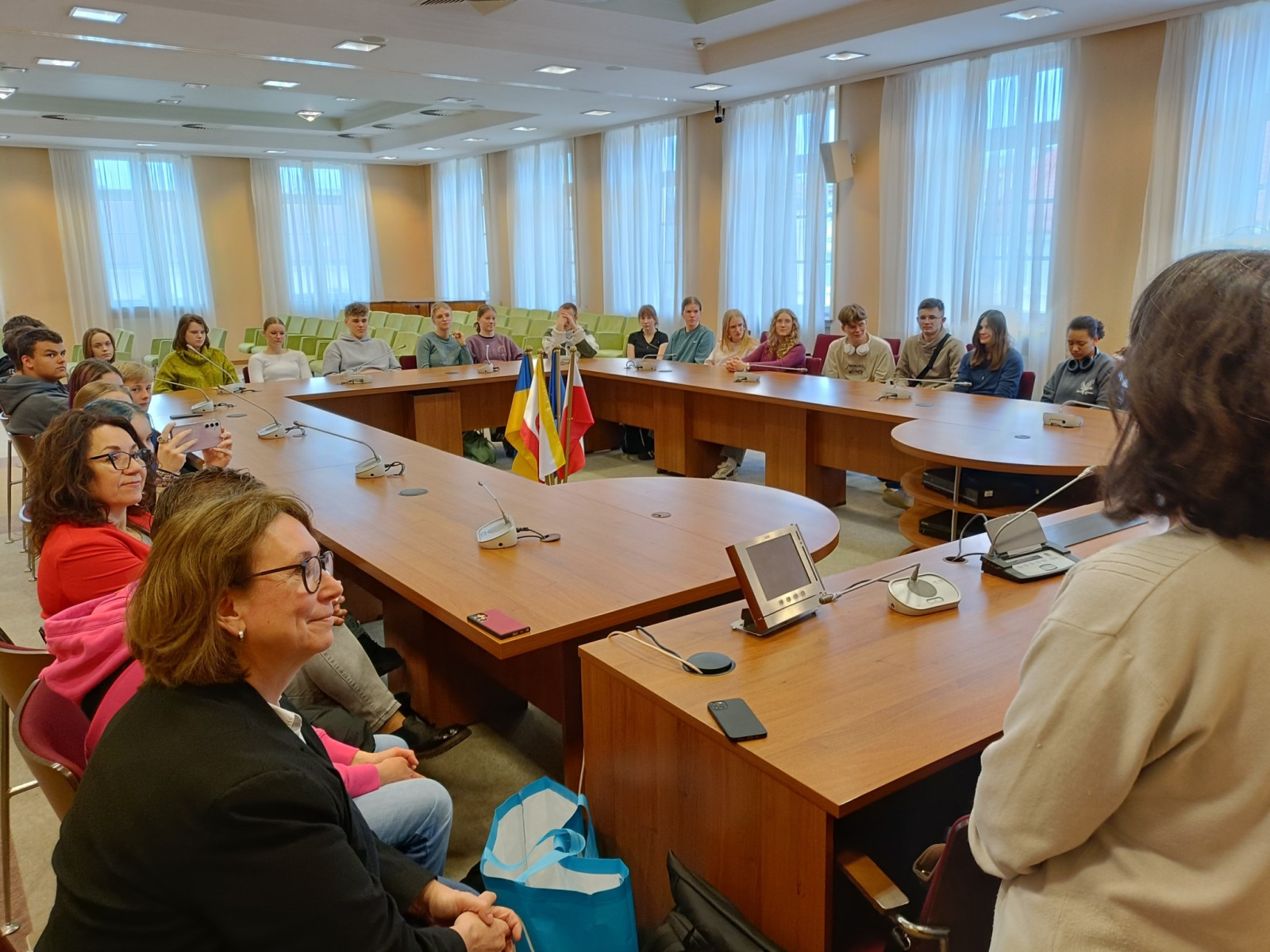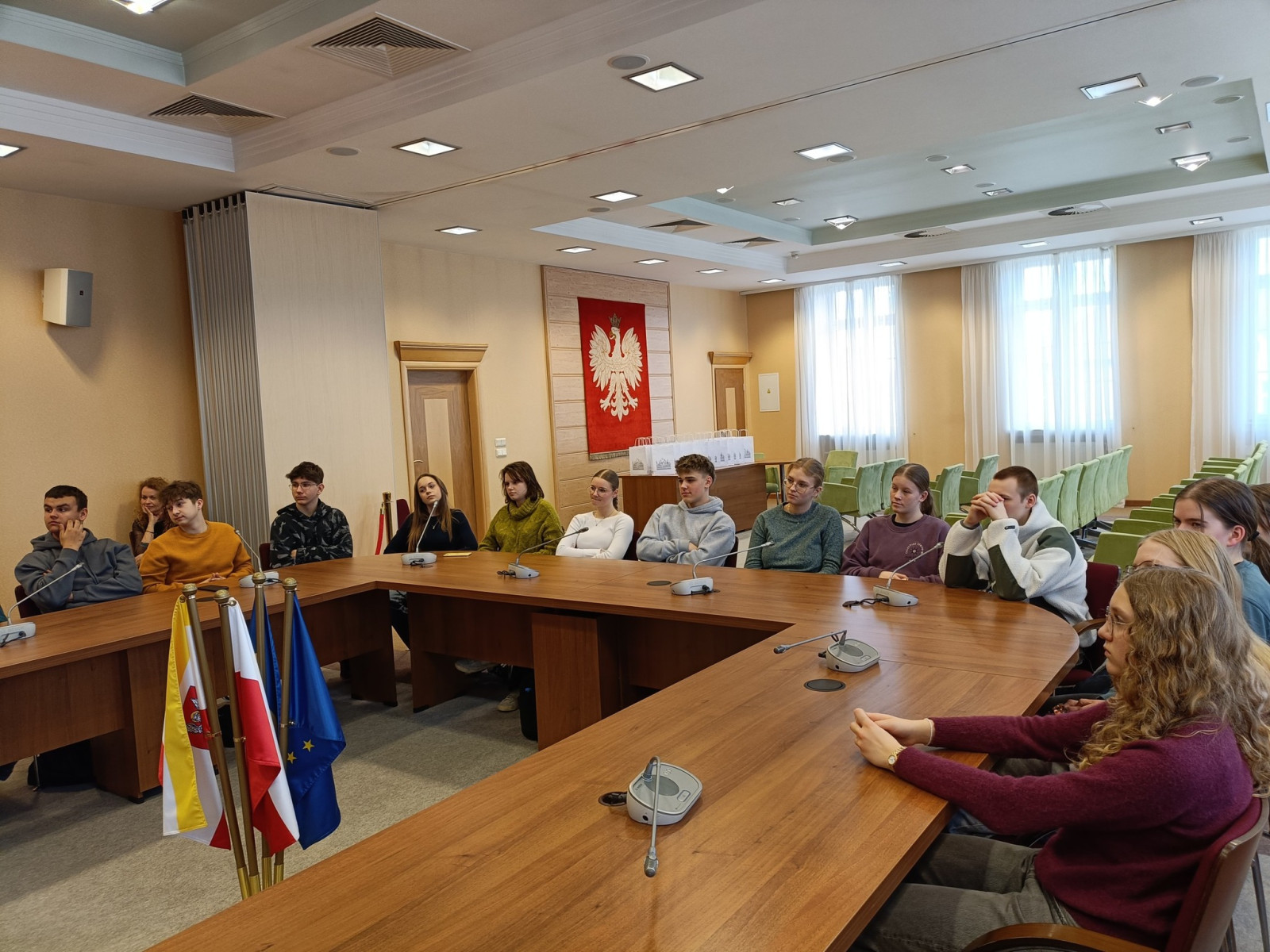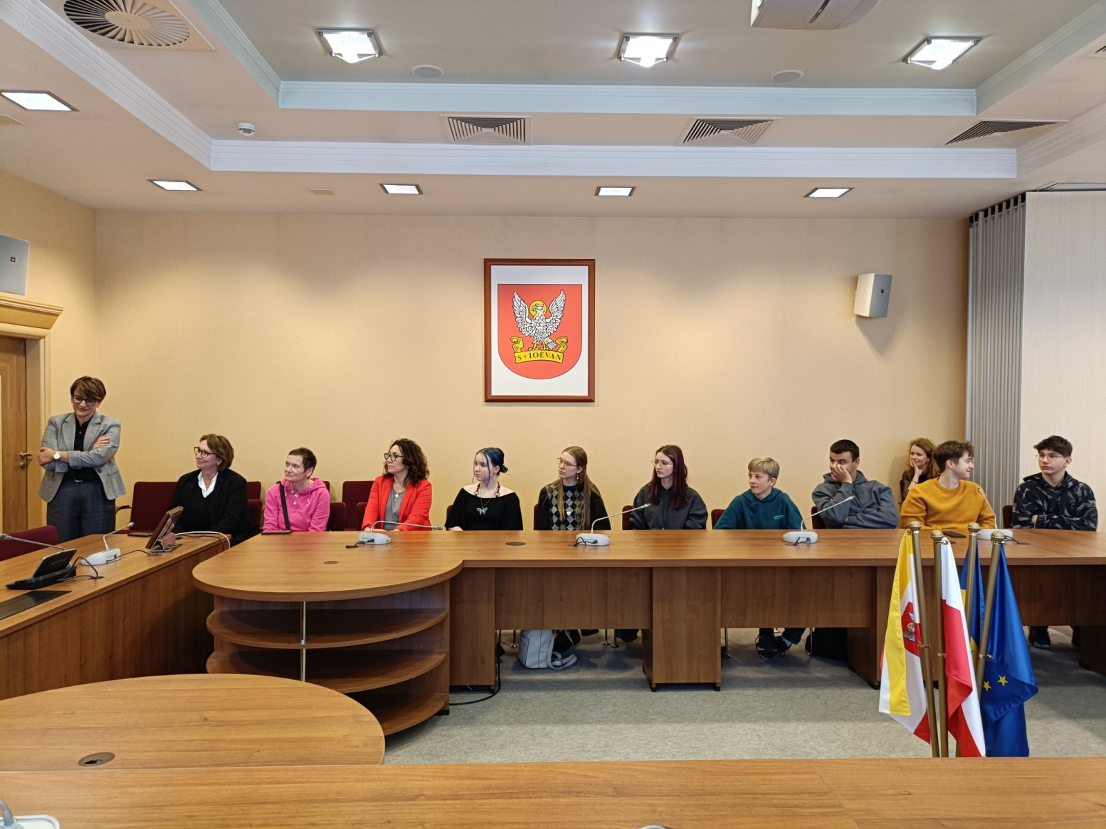 W sali Rady Miasta zasiadło 14 uczniów z klas drugich I Liceum Ogólnokształcącego wraz z dyrektor Marzeną Helińską i koordynatorami wymiany Anettą Grzesik-Robak i Ewą Lubońską a także 11 uczniów właśnie z naszego partnerskiego miasta. To była świetna okazja do poznania. Burmistrz wyraził radość z faktu, że oleśniccy uczniowie biorą udział w takich projektach i że możemy gościć uczniów z Niemiec.