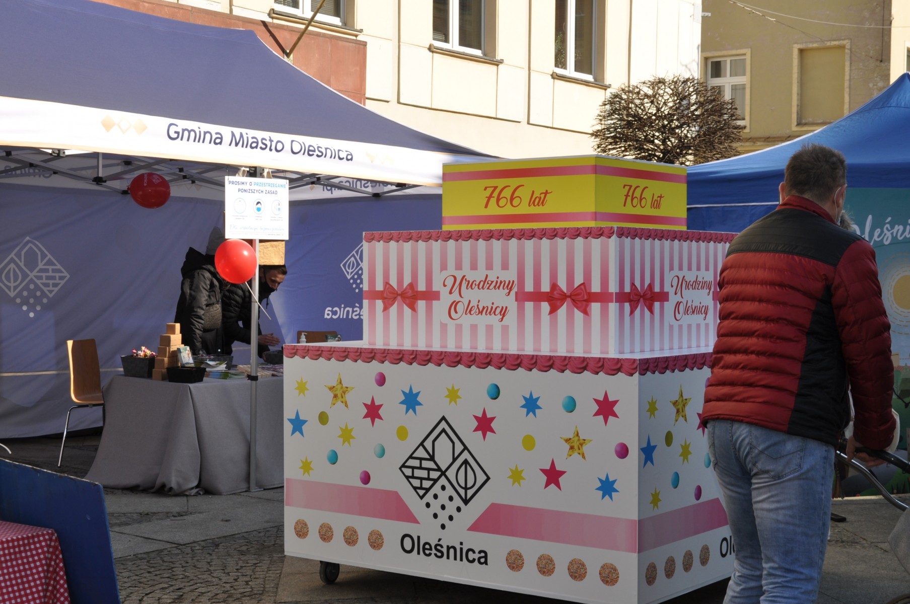 Burmistrz Oleśnicy, Jan Bronś złożył życzenia Oleśnicy i wszytskim mieszkańcom, a później wszyscy zaśpiewali 1000 lat niech żyje nam. Punktem kulminacyjnym było wypuszczenie kolorowych balonów z helem z wielkiego tortu stworzonego specjanie z okazji urodzin miasta. Widok robił wrażenie. Później odważni zatańczyli jeszcze Macarene wraz z żywymi maskotkami.